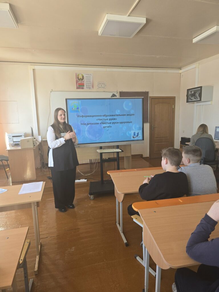 13.03.2026 для учащихся ГУО «Езерская средняя школа» и воспитанников ГУО «Езерский детский сад» в рамках областной информационно-образовательной акции «Чистые руки!» и профилактического проекта «Агрогородок Езеры-здоровый агрогородок» для учащихся 5 и 6 классов инструктором-валеологом и помощником врача-эпидемиолога УЗ «Чериковский райЦГЭ» проведена информационно- образовательная акция «Чистые руки» под девизом «Чистые руки — здоровые дети!» с показом презентации «Чистые руки». В конце акции всем учащимся был вручен информационно-образовательный материал по профилактики острых кишечных инфекций, гепатита А, энтеробиоза. Также в рамках приближающего Единого дня здоровья «Всемирный день здоровья полости рта» озвучили вопросы по профилактике заболеваний полости рта с проведением викторины и раздачей информацинно-образовательного материала по данной тематике.